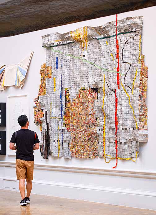 Nnenna Okore, who will also be in Paris to present a talk at the fair on 21st October, with Claire Staebler, Director of FRAC Pays de la Loire (Nantes) as the moderator. Especially made for the fair, Okore’s large-scale installation includes materials such as plastic bags, yarn and sticks, dexterously interwoven in undulating forms. At the Gallery booth, Okore will be represented by