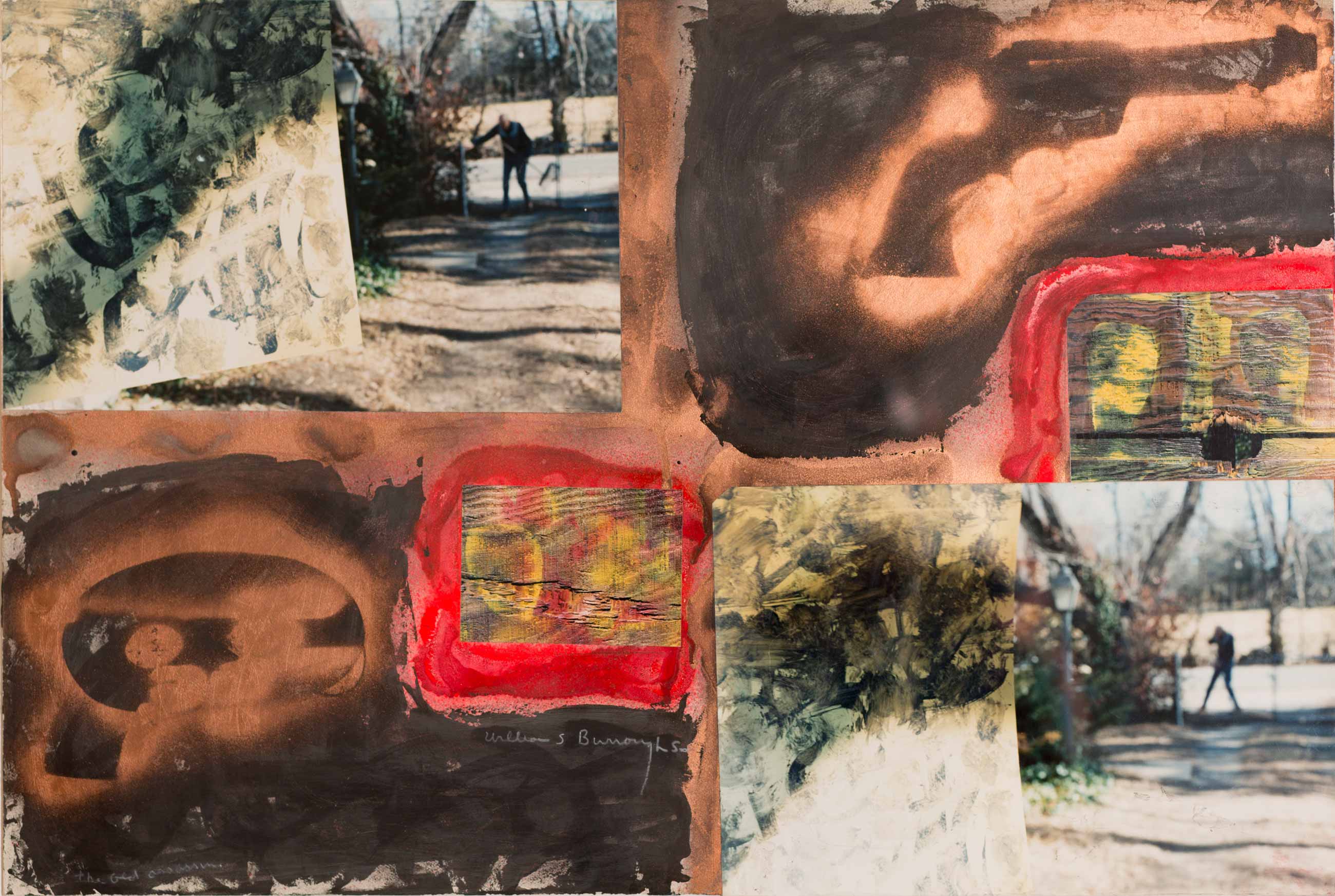 William S. Burroughs, a primary figure of the Beat Generation, profoundly influenced literature, media and successive generations of youth movements. In his incisive essays, longer fictional works, multimedia and visual art, he worked to expose political, economic and cultural control systems. Burroughs graduated from Harvard in anthropology. He mentored Jack Kerouac and Allen Ginsberg in New York, where jointly they made a pact to change the course of literature. Burroughs explored relationships between word and image and, parallel to his literary output, made photographs and collages. The artist Brion Gysin introduced him to the powerful ‘cut-up’ technique, leading to influential collaborations between the two. When Gysin died in 1986, Burroughs honoured his friend by producing hundreds of paintings, collages and pieces of "shotgun art."