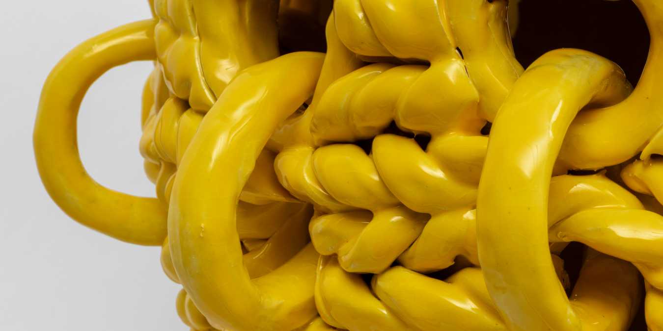 Somers graduated from Michaelis School of Fine Art, UCT, Cape Town, South Africa in 2015 and was subsequently awarded a grant to study MA Postcolonial Culture and Global Policy at Goldsmiths, University of London, which she completed in 2020 with distinction. Her large-scale, vibrant works carry barbed social and political critiques. The bodies of her intricate pieces are hand-coiled in the traditional way and then disrupted – their surfaces punctured, woven or adorned with meticulously shaped and painted details. Her ceramics draw on a rich vocabulary of contemporary symbols to examine what she refers to as the “subtle treason of objects”. Their hand-coiled forms bristle, morph and move, fusing political commentary with a strong sense of domestic intimacy. These idiosyncratic creations evoke a sense of play, by deliberately combining excessive ornamentation with veiled political commentary that draws attention to women’s work, cheap labour, overconsumption and the impact of eco-racist practices throughout the Global South. Additionally, the weighted shape of her ceramics – favouring curvature and vessel form – pose as a feminist engagement of sculpture. Somers asks us to question the ways in which the post-colony co-opts us into its campaigns of violence against marginalised peoples, she impels us to consider how ordinary cruelty can become.