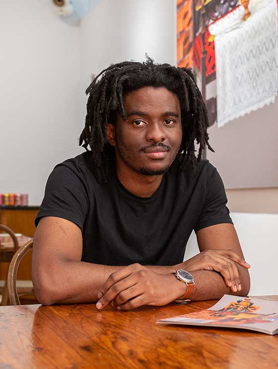 RA was born in Edinburgh, raised in Guyana and lives in London. He knew