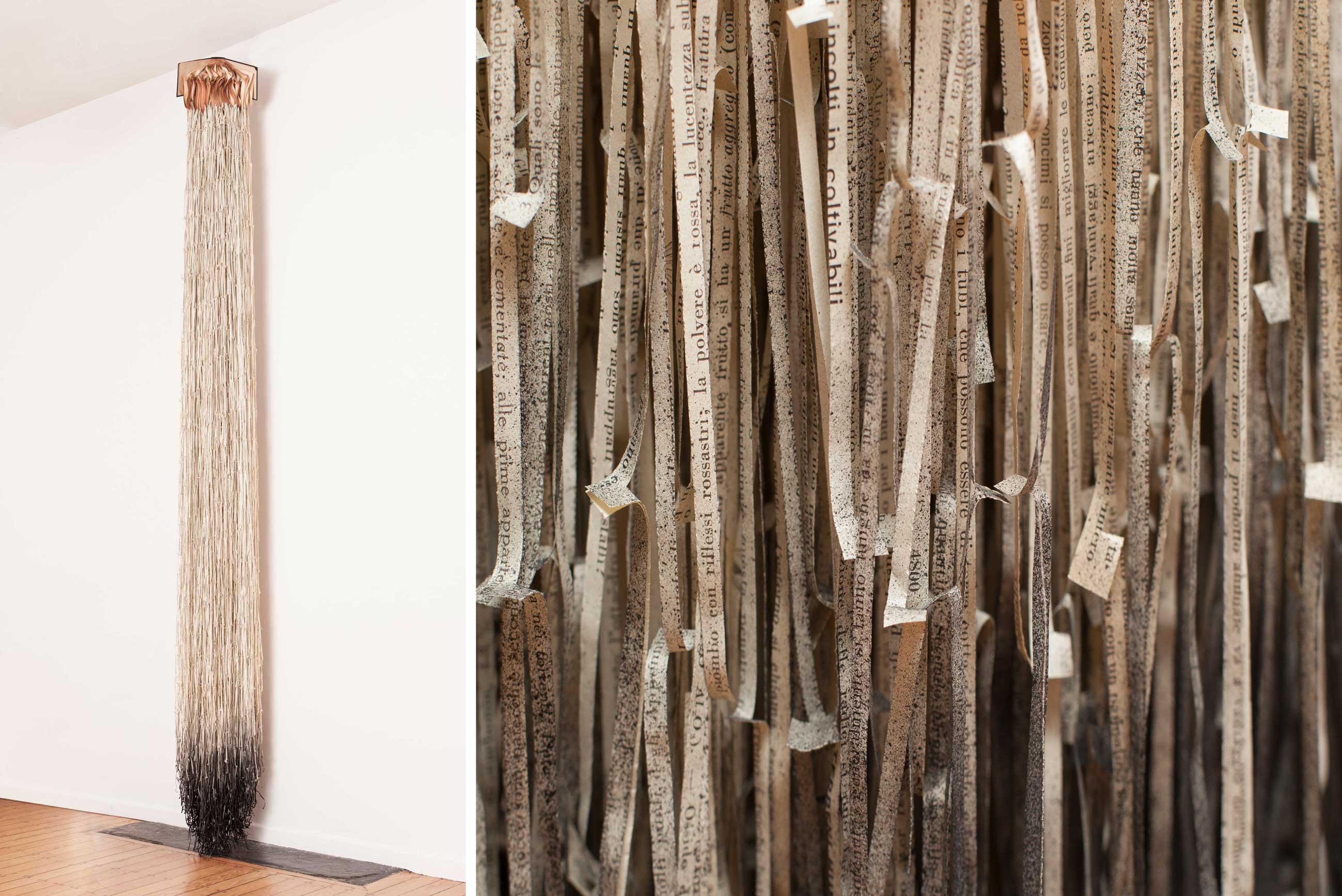 Jukhee Kwon creates works from the printed page quite literally; using abandoned and disused books, she shreds the pages by hand to create magnificent ‘book sculptures.’ The sculptures brim with energy, often flowing out of books in the form of cascading waterfalls. Each book, while destroyed, claims a new life and existence through creation.