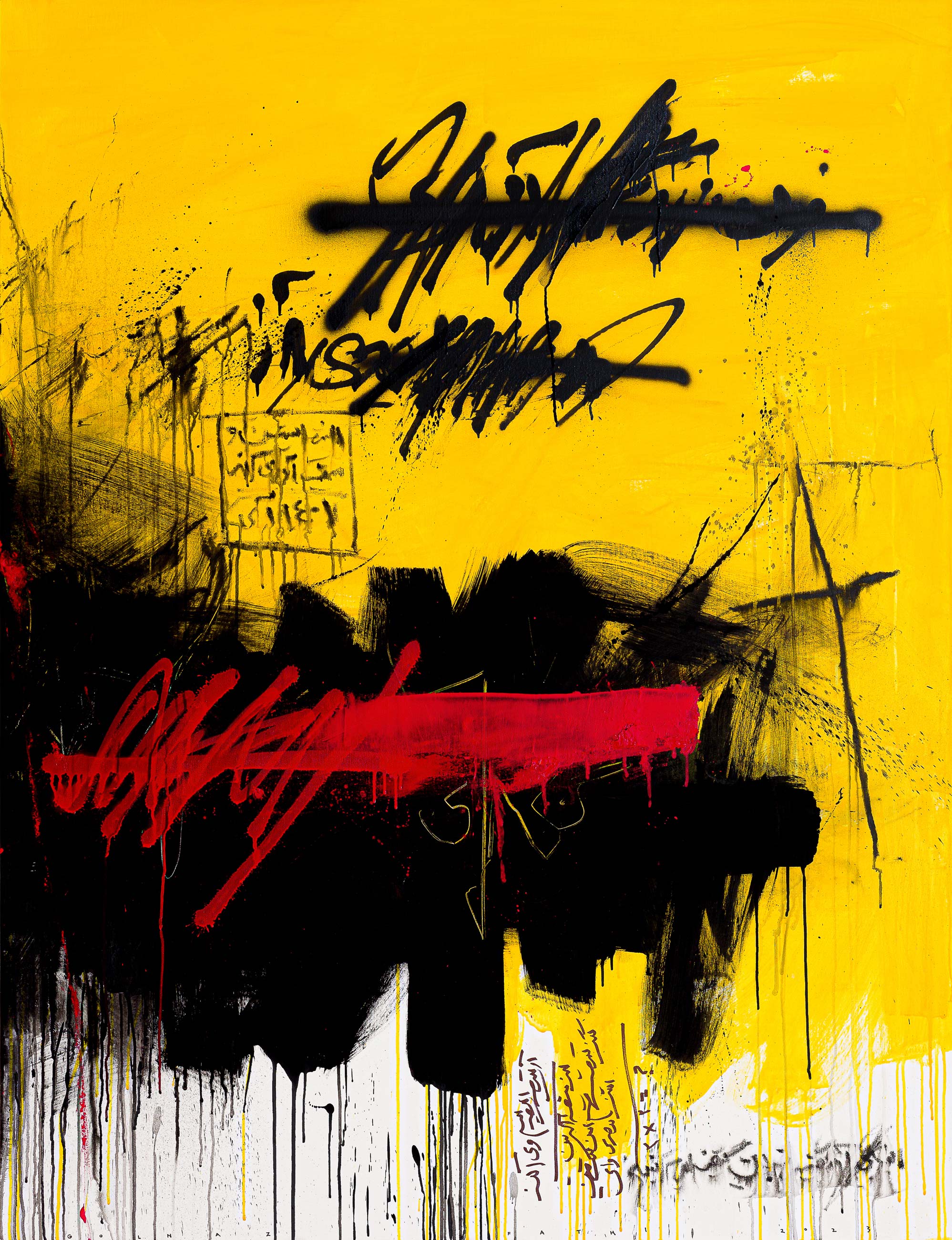 Iranian artist Golnaz Fathi’s bold gestural works present many layers of mysterious meanings. While exact communication depends upon the legibility of any text, the sheer accumulation of overwritten lines purposely obliterates all possibility of direct interpretation. Tian Wei’s striking monochrome works construct a bridge between East and West. While the artist’s cursive shapes initially look like Chinese characters, on closer examination the ciphered text can only be ‘read’ in English. Also presented is a rediscovered dynamic painting, from 1990, by Elisabeth Lalouschek.
