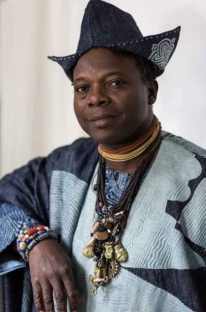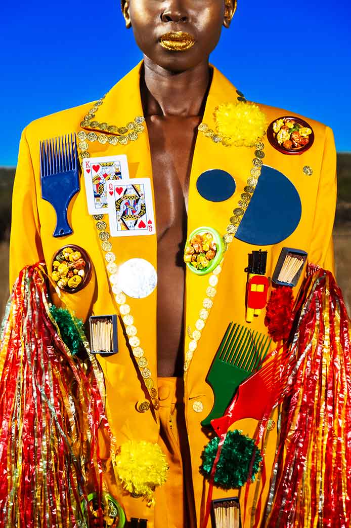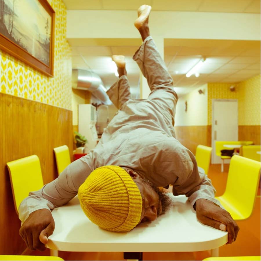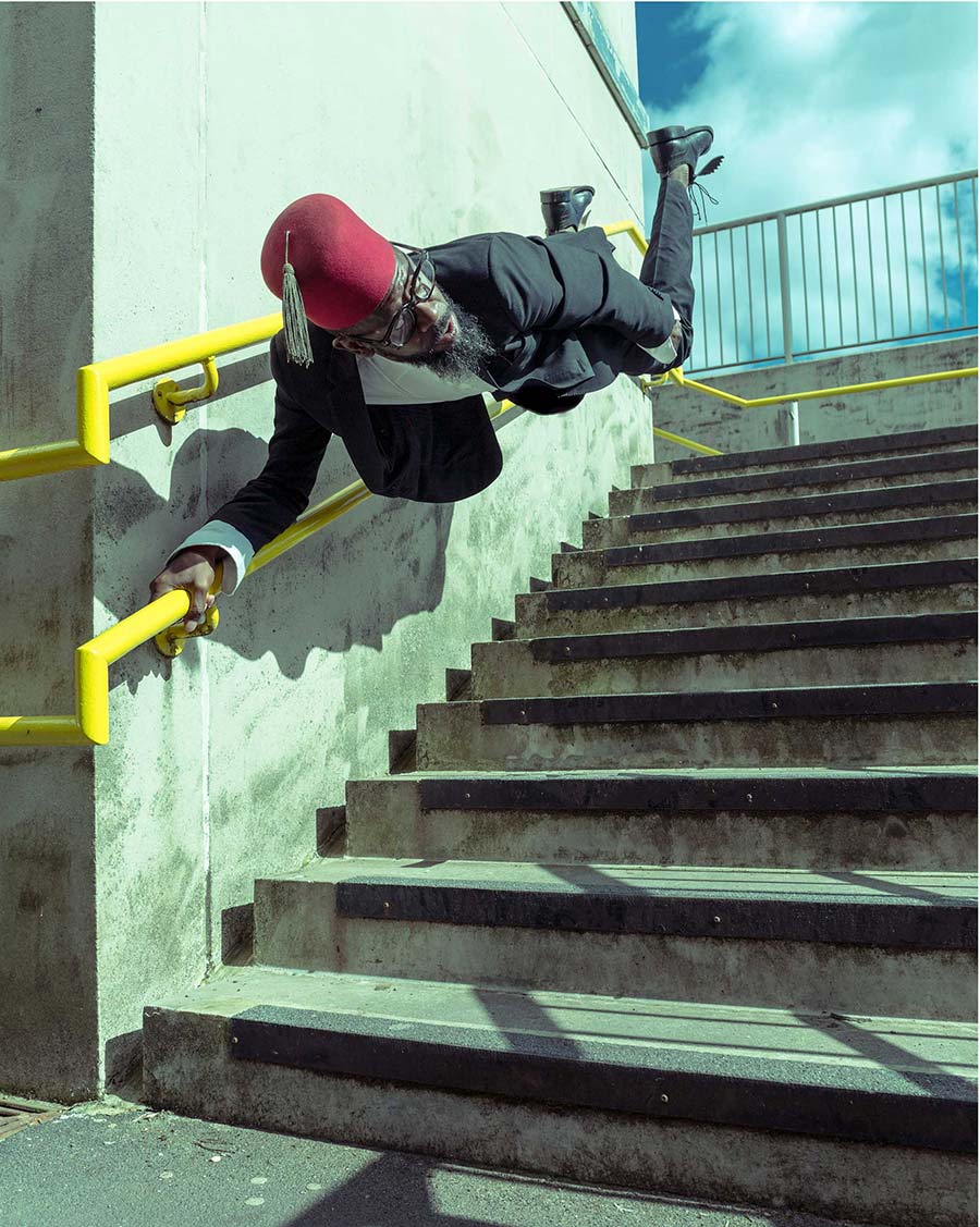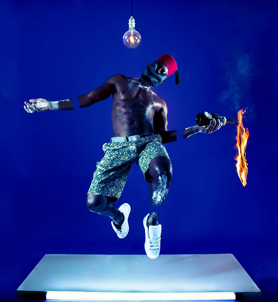 Benji Reid, whose works are primarily composed of self-portraits in eye-catching anti-gravitational poses. Reid seduces the viewer by creating alternative realms of hyper-reality, adorned with a medley of marvelous objects, set against imaginary surroundings. Choreography and photography unite in Benji Reid’s evocative images and his works have been shown in MoCADA (Museum of Contemporary African Diasporan Arts), New York, as part of the 2019 exhibition