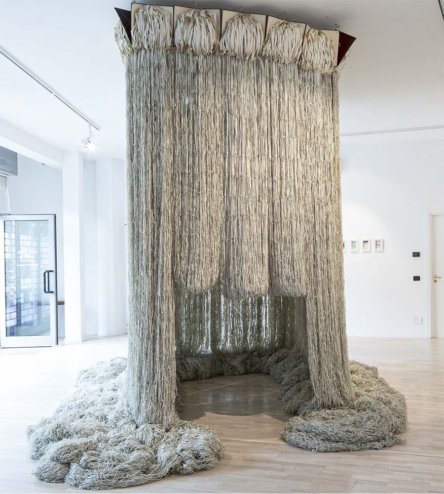 Nnenna Okore, who will also be in Paris to present a talk at the fair on 21st October, with Claire Staebler, Director of FRAC Pays de la Loire (Nantes) as the moderator. Especially made for the fair, Okore’s large-scale installation includes materials such as plastic bags, yarn and sticks, dexterously interwoven in undulating forms. At the Gallery booth, Okore will be represented by