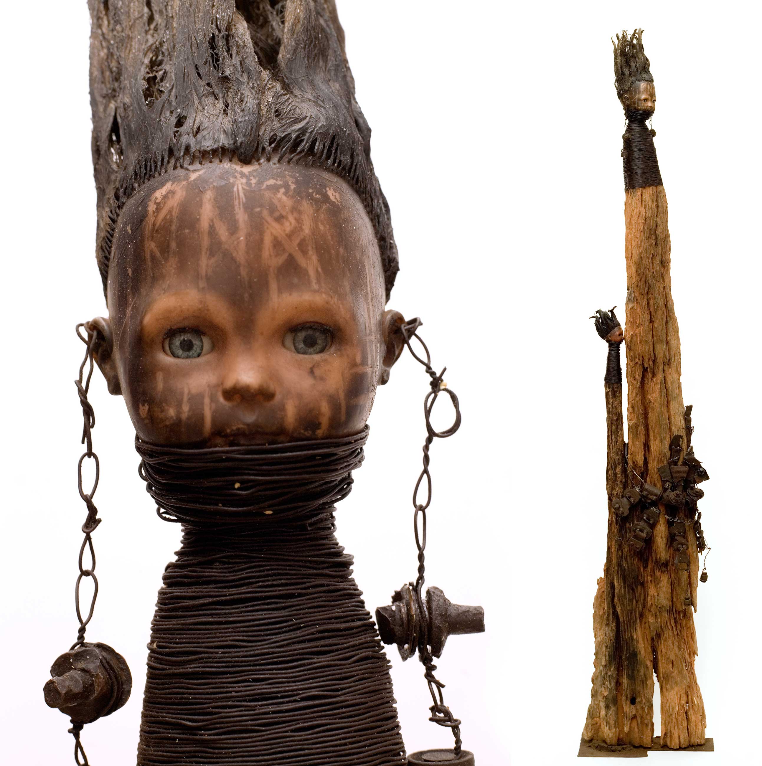 Wood, doll, wire, hardware, 203 x 37 x 16 cm.