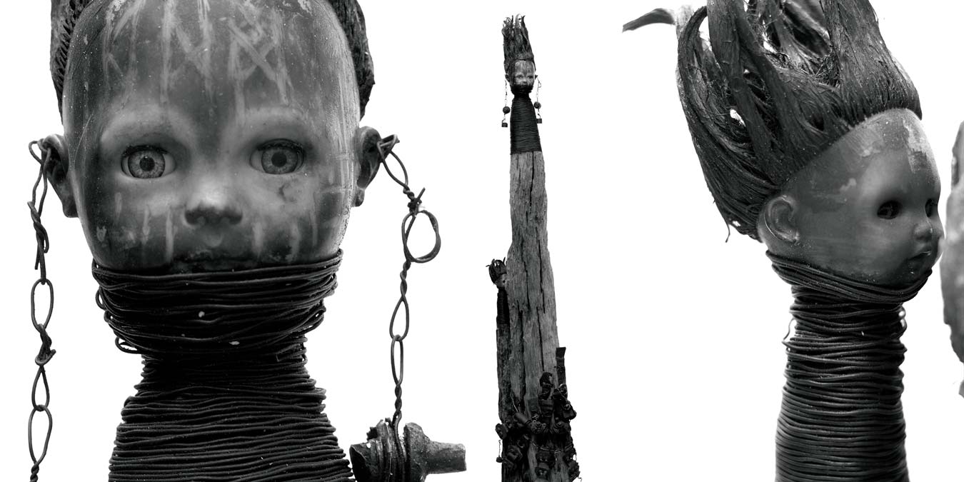 Gerard Quenum’s work is instantly recognisable owing to his signature use of discarded dolls’ parts and found objects, which create witty yet haunting ‘portraits’. Quenum uses aged dolls which he reconfigures into evocative assemblages. The sculptor’s ability lies in his storytelling, engaging the imaginative faculties by transporting the viewer into an alternate reality transcending time and space. The wooden objects he chooses - mortars, ritual drums or pilings that once supported entire houses in the marshy lagoons surrounding Porto-Novo, also have unique histories. The woods are impregnated with inherited stories, their roughened surfaces speaking about the lives of many, concealing alternate worlds and other experiences entirely. Through his sculptures, Quenum fulfils his main task to ‘act as a messenger’.